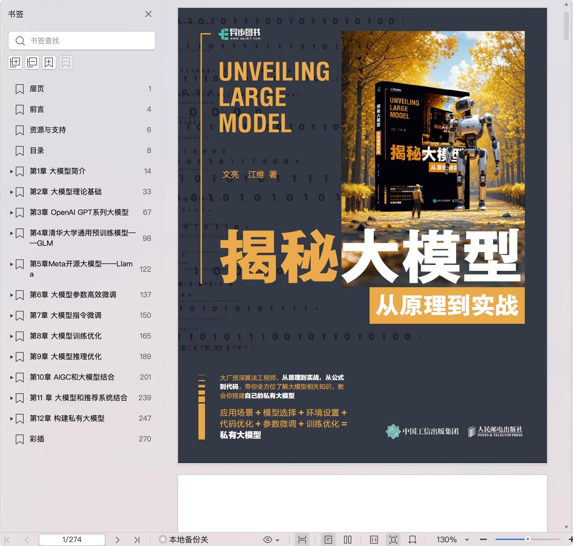 本书从技术角度深度解析大模型的原理,从大模型的基础概念及领域发展现状入手,概述大模型的理论基础,介绍OpenAI GPT、清华大学GLM、Meta Llama等主流大模型的技术原理,并从大模型参数高效微调、大模型指令微调、大模型训练优化和大模型推理优化等多角度解析大模型背后的技术,带领读者全方位掌握大模型的原理和实践方法。本书最后介绍私有大模型的构建,手把手指导读者做技术选型并搭建自己的私有大模型。 本书适合人工智能领域有大模型开发需求或对大模型技术感兴趣的技术人员阅读,也适合普通用户扩展了解大模型的前沿应用。