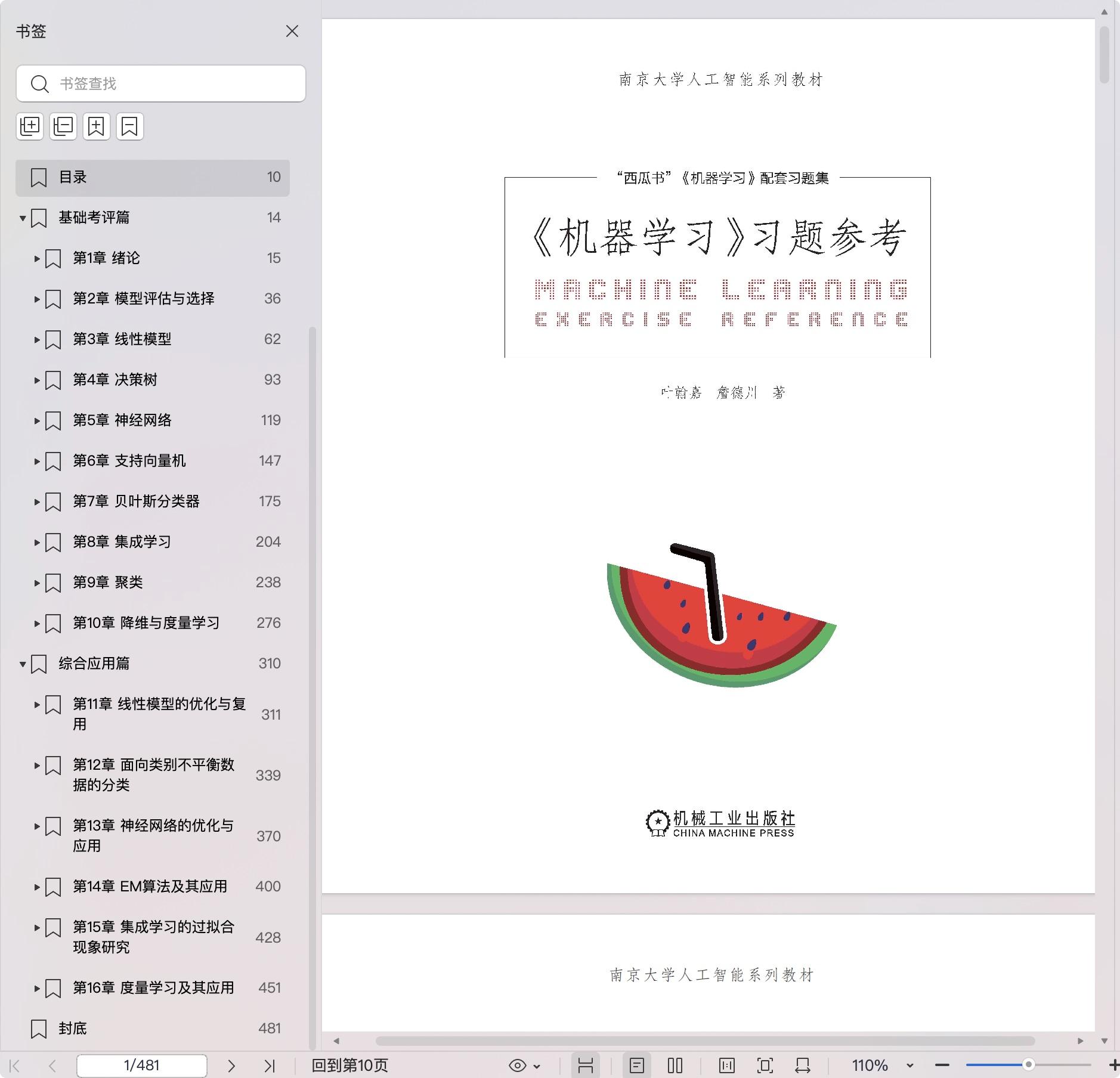 由叶翰嘉和詹德川两位老师合作的《〈机器学习〉习题参考》(以下简称“本书”)是一本配合本人所撰《机器学习》(清华大学出版社于2016年出版,以下采用读者给予的昵称“西瓜书”)的教学参考书。