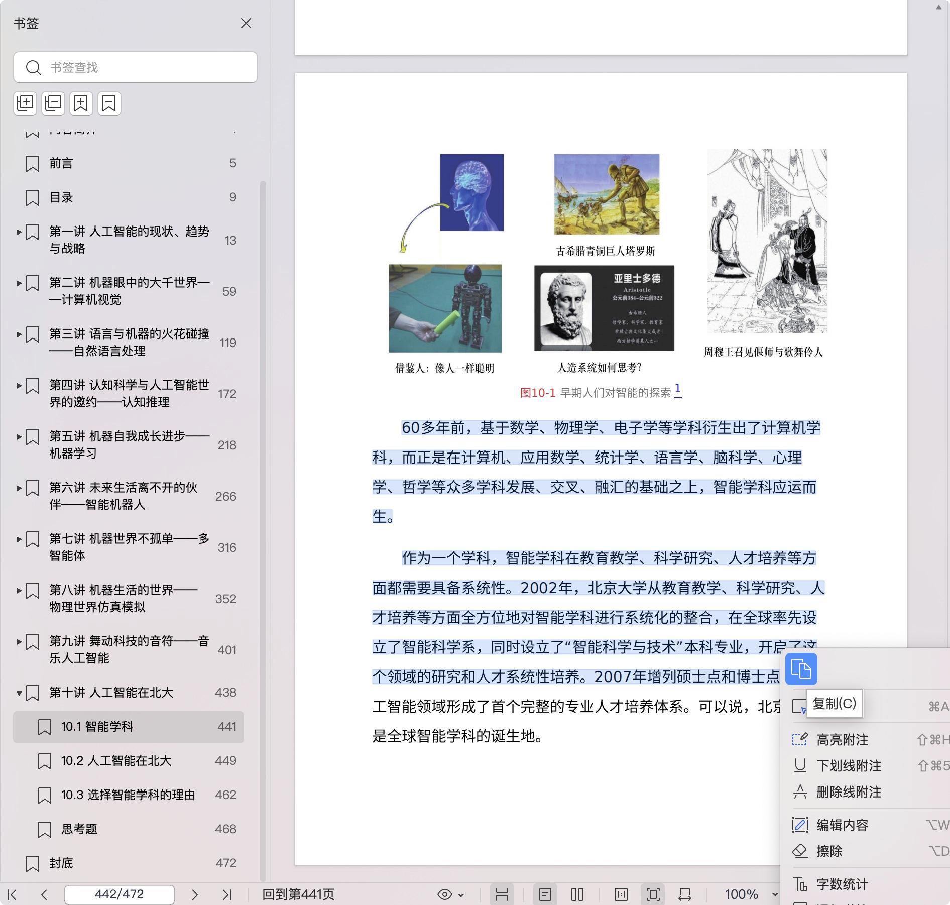 本书是关于人工智能(AI)是什么、研究什么及其应用与发展现状的科普读物,分十讲进行编写:第一讲,人工智能的现状、趋势与战略;第二讲,机器眼中的大千世界——计算机视觉;第三讲,语言与机器的火花碰撞——自然语言处理;第四讲,认知科学与AI世界的邀约——认知推理;第五讲,机器自我成长进步——机器学习;第六讲,未来生活离不开的伙伴——智能机器人;第七讲,机器世界不孤单——多智能体;第八讲,机器生活的世界——物理世界仿真模拟;第九讲,舞动科技的音符——人工智能音乐;第十讲,人工智能在北大。
