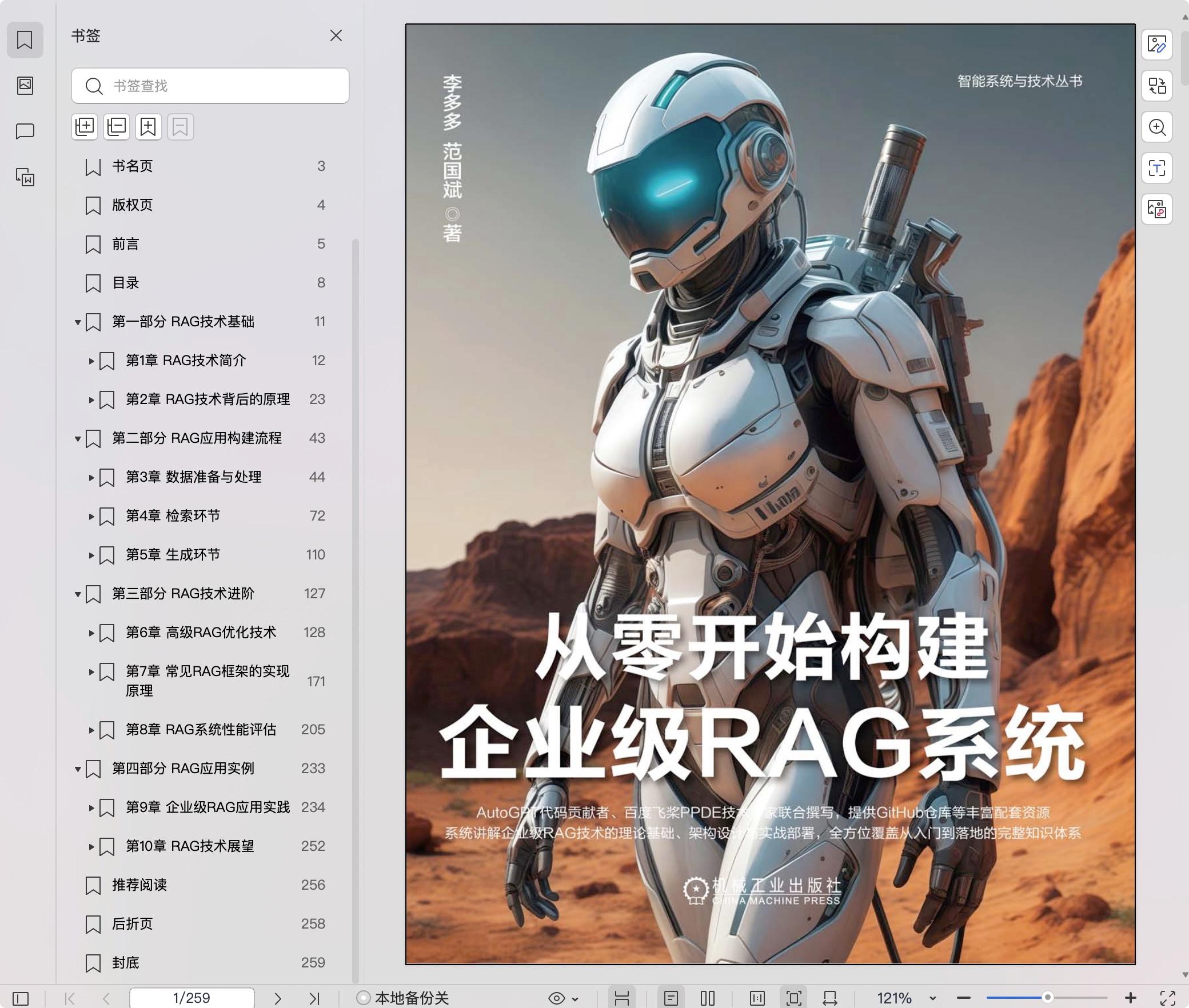 这是一本面向企业级AI应用开发者和决策者的RAG技术实战指南,全面覆盖了从基础理论到高级优化的各个环节。本书采用循序渐进的讲解方式,配以丰富的图表和代码示例,为读者提供了一条完整的学习路径,帮助读者快速掌握RAG技术的精髓。