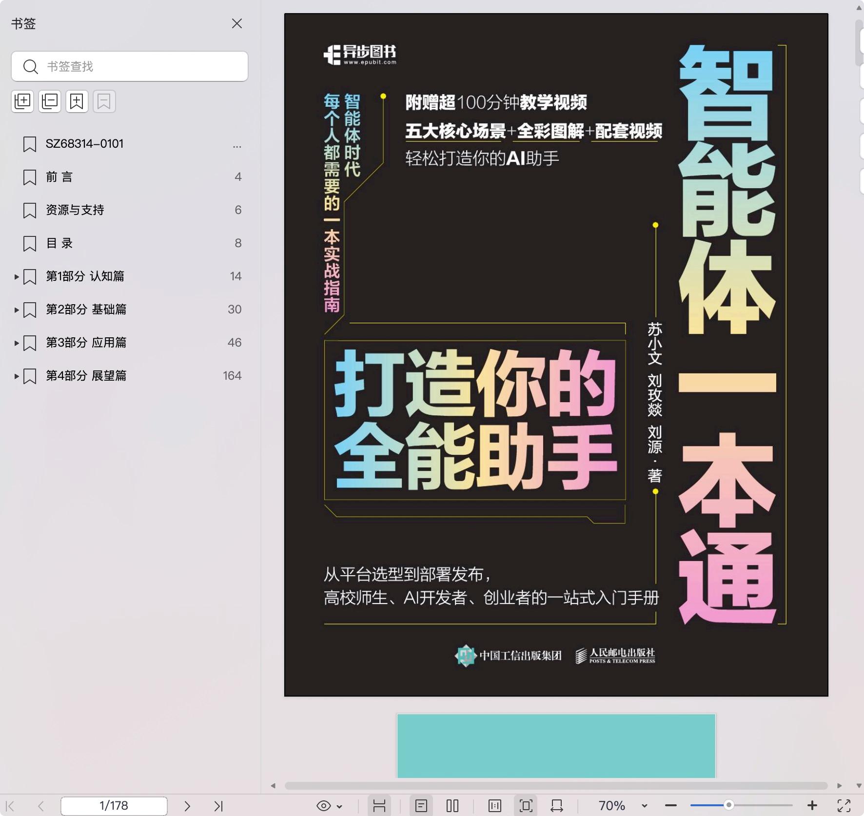 本书系统梳理当前智能体技术的发展脉络与应用趋势,全面解析智能体的构建原理与实战场景,帮助读者从零起步,掌握打造高效AI助手的核心方法。本书分为4个部分,共8章,第1部分(第1章)介绍大模型与智能体的基础知识、国内外主流的智能体;第2部分(第2章)详细讲解智能体的构建流程;第3部分(第3~7章)聚焦主流智能体在各类实际场景(教学、职场、创作、副业与科研)中的应用,并提供功能介绍、操作步骤和小案例;第4部分(第8章)深入探讨通用智能体、智能体间协作、团体协作开发智能体和人机共演的未来图景,引导读者把握智能体时代的新风口。本书适合对AI感兴趣的教师、家长、学生、职场人士,以及希望借助智能体提升效率、增加收入的读者阅读。