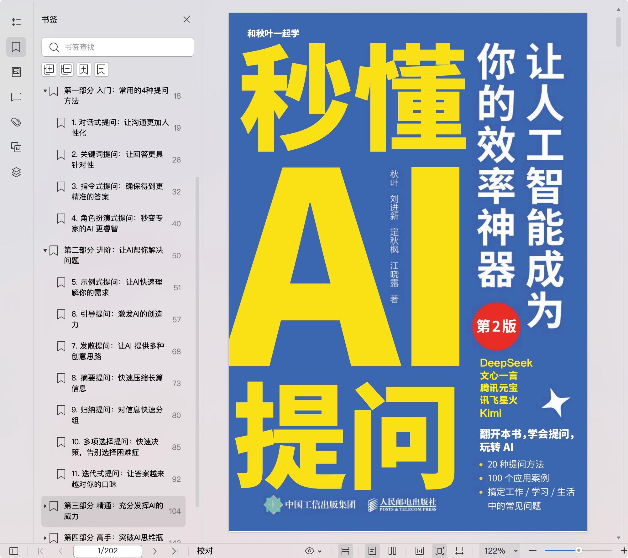 要想高效地利用AI,关键在于我们如何提问。本书首先介绍提示词的设计技巧,然后系统地介绍了20 种向AI 提问的有效方法,最后介绍提问方法的组合运用以便解决复杂问题。 《秒懂AI提问:让人工智能成为你的效率神器(第2版)》紧扣工作、学习和生活,在介绍提问方法时,通过对比让读者直观感受不同提问方法的效果,并结合实例展示AI 在不同场景下的应用,让读者真正学以致用。 《秒懂AI提问:让人工智能成为你的效率神器(第2版)》适合对AI 感兴趣的各行业人士阅读。