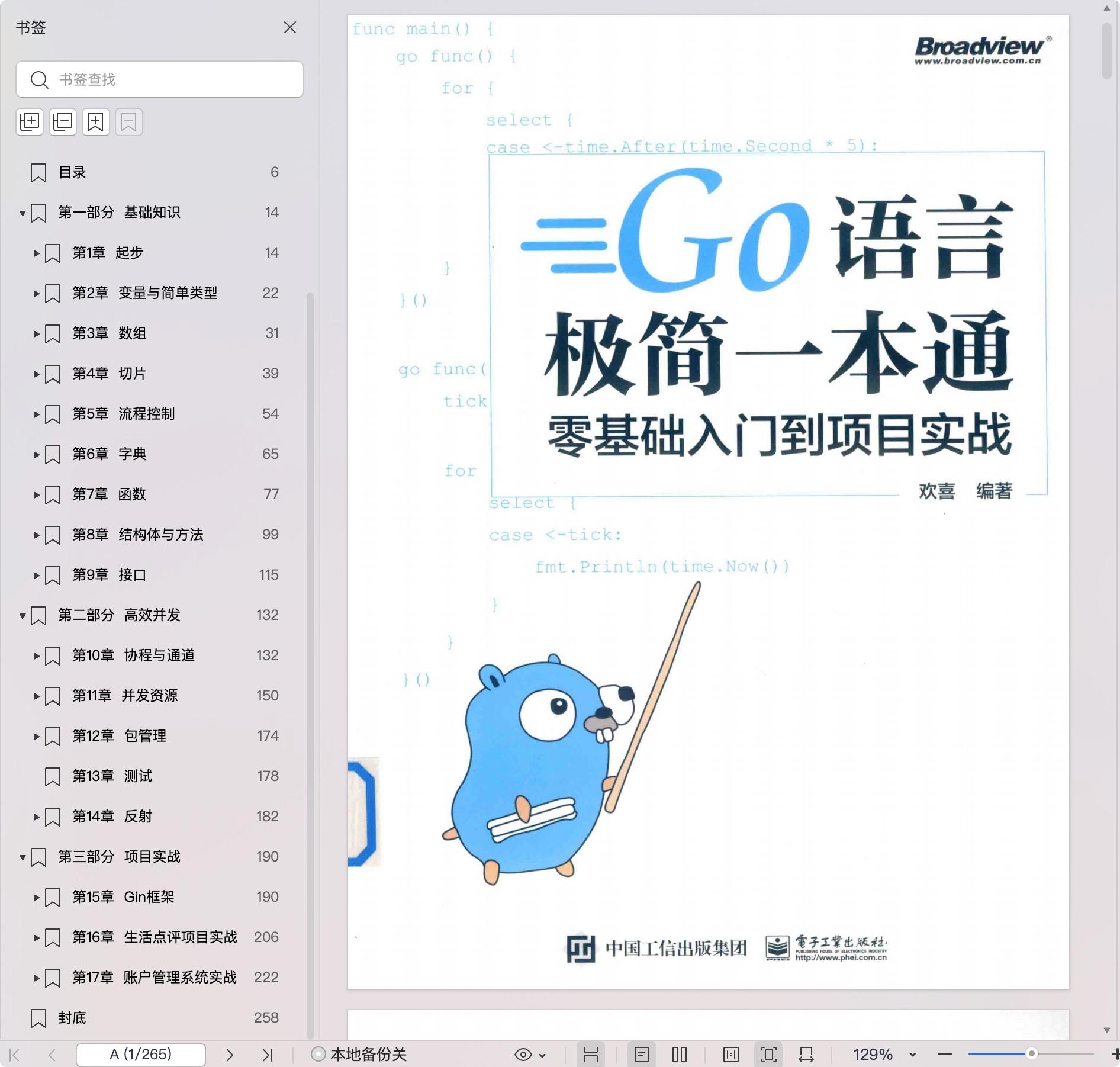 《Go语言极简一本通:零基础入门到项目实战》是一本Go 语言入门书,全书共分为三部分。第一部分讲解Go 语言基础知识,包括变量与简单类型、数组、切片、流程控制、字典、函数、结构体与方法、接口等,可以帮助读者快速掌握Go 语言的基本程序结构。第二部分讲解Go 语言高效并发相关知识,包括协程与通道、并发资源、包管理和测试等,让读者对Go 语言层面的并发支持有更深入的理解。第三部分讲解Go 语言项目实战,包括Gin 框架、生活点评项目实战、账户管理系统实战,以及OAuth 2.0 的授权协议等。实战则把前面讲解的知识点运用起来,帮助读者快速上手,积累项目经验。