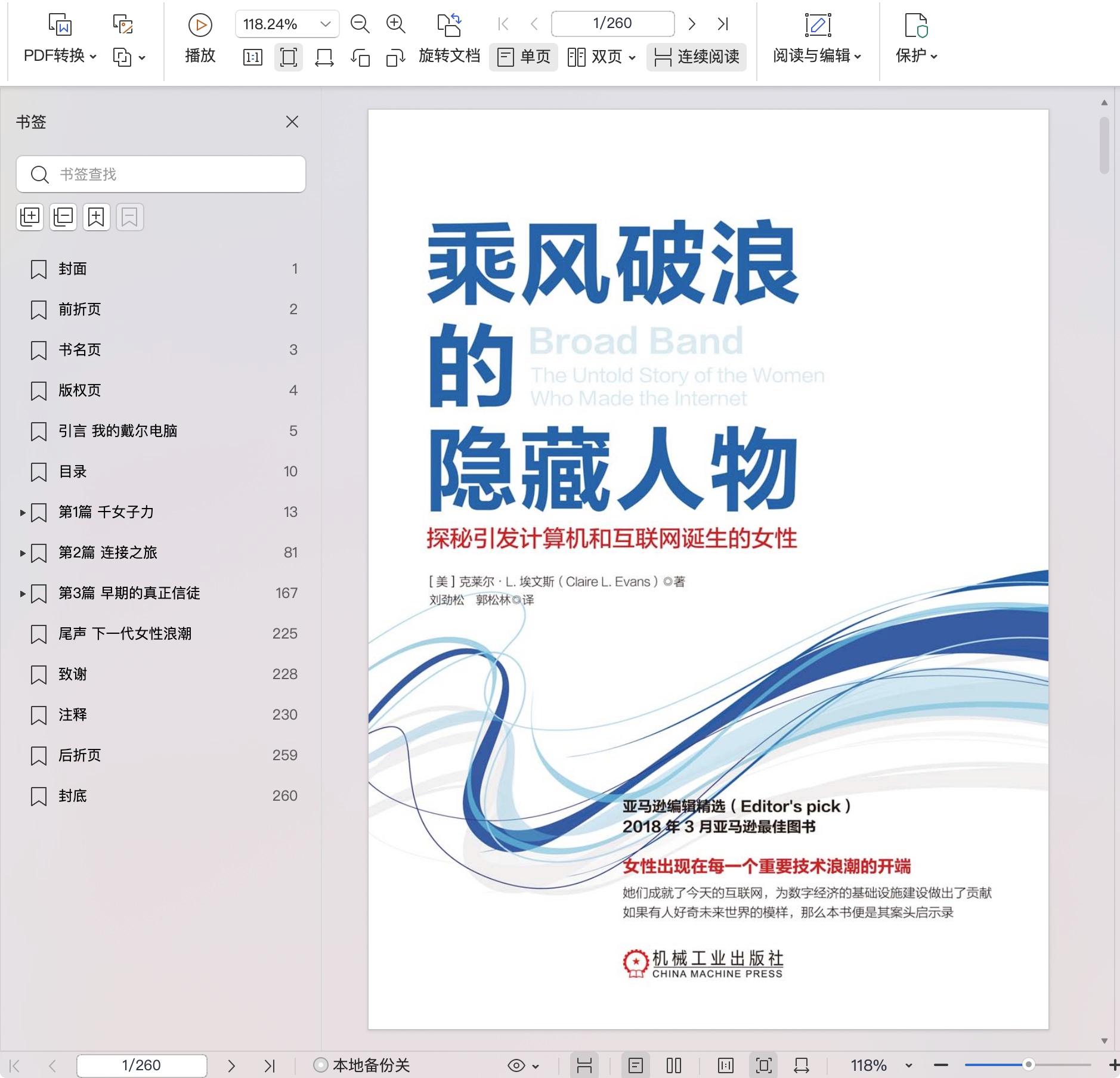 本书分为3篇共13章,按计算机起源、连接、上网这一发展脉络,用生动的语言串联起计算机和互联网的发展史。书里介绍了10多位科技行业先驱,如编写第一个计算机程序的艾达·洛夫莱斯;推动计算程序普及的百折不挠的格蕾丝·霍珀;见证了互联网最初版本诞生的伊丽莎白·费恩勒;创造了世界上最早的社交网络的斯泰茜·霍恩。