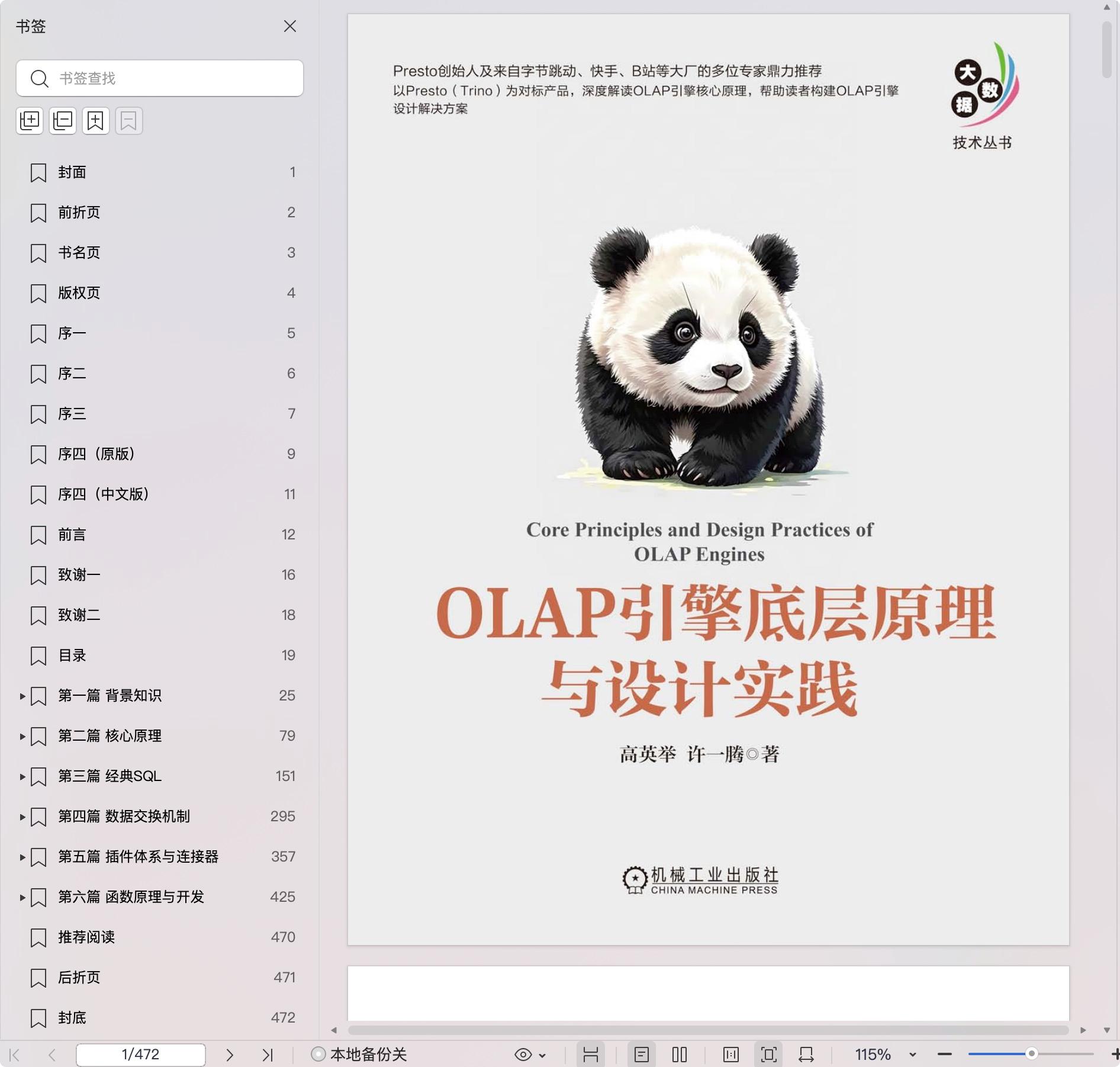 第五篇(11-12章)以Presto为例整体介绍了比较流行的OLAP引擎扩展机制——插件体系与连接器。