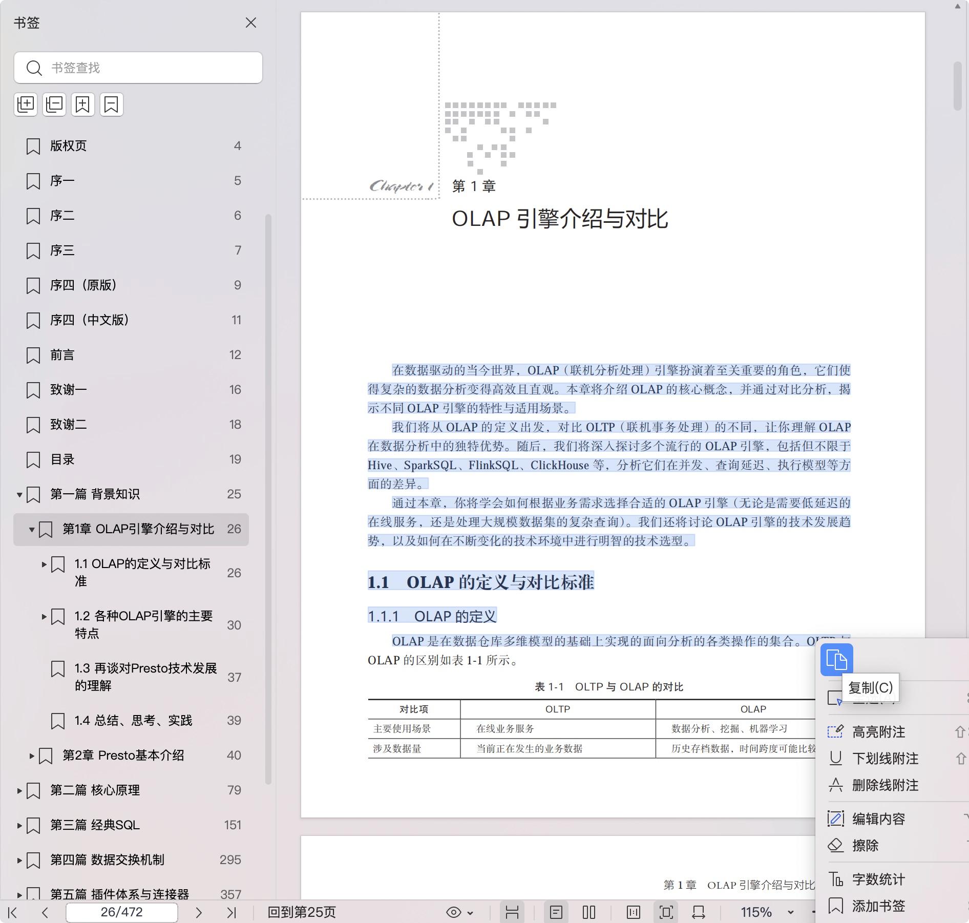 第一篇(1-2章)总体介绍业界常见的OLAP引擎并分析优劣,讨论OLAP引擎的技术发展趋势,以及如何选型,介绍了Presto相关的背景知识。