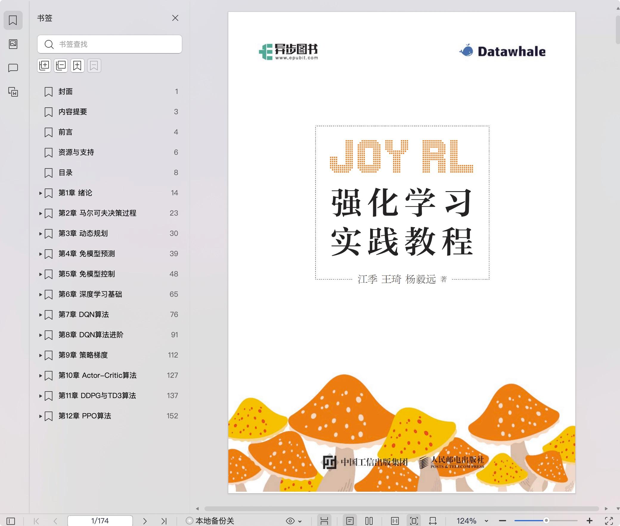 本书是继《Easy RL:强化学习教程》(俗称“蘑菇书”)之后,为强化学习的读者专门打造的一本深入实践的全新教程。全书大部分内容基于3位作者的实践经验,涵盖马尔可夫决策过程、动态规划、免模型预测、免模型控制、深度学习基础、DQN算法、DQN算法进阶、策略梯度、Actor-Critic算法、DDPG与TD3算法、PPO算法等内容,旨在帮助读者快速入门强化学习的代码实践,并辅以一套开源代码框架“JoyRL”,便于读者适应业界应用研究风格的代码。与“蘑菇书”不同,本书对强化学习核心理论进行提炼,并串联知识点,重视强化学习代码实践的指导而不是对理论的详细讲解。