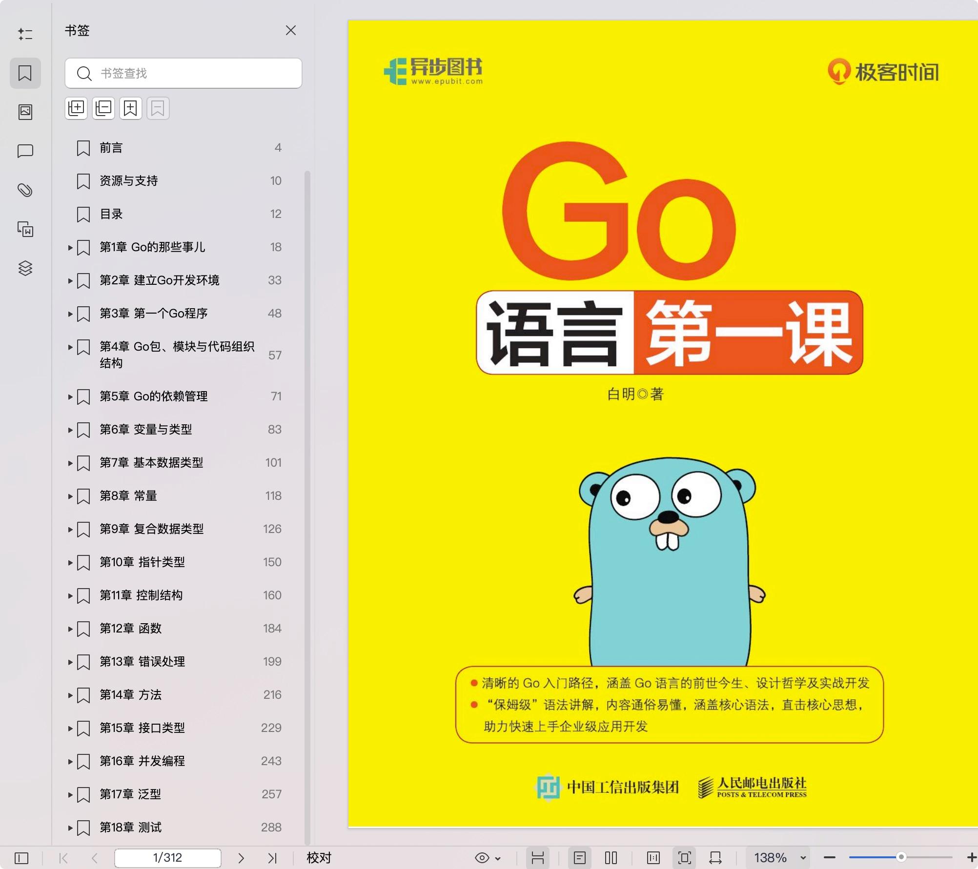 本书由浅入深地介绍了Go编程语言。首先,本书揭示了Go的发展历程和设计哲学,引导读者了解Go的核心理念;其次,详细介绍了建立Go开发环境、编写Go程序、Go的代码组织和依赖管理等内容,为读者夯实编程基础;再次,重点讲解了Go的语法特性,包括变量与类型、基本数据类型、常量、复合数据类型、指针类型、控制结构、函数、错误处理、方法、接口类型、并发编程、泛型等,确保读者能够掌握Go的复杂特性;最后,介绍了Go的测试,帮助读者确保代码质量和性能。本书结构清晰,内容丰富,适合对Go感兴趣并希望系统学习的读者阅读和参考。