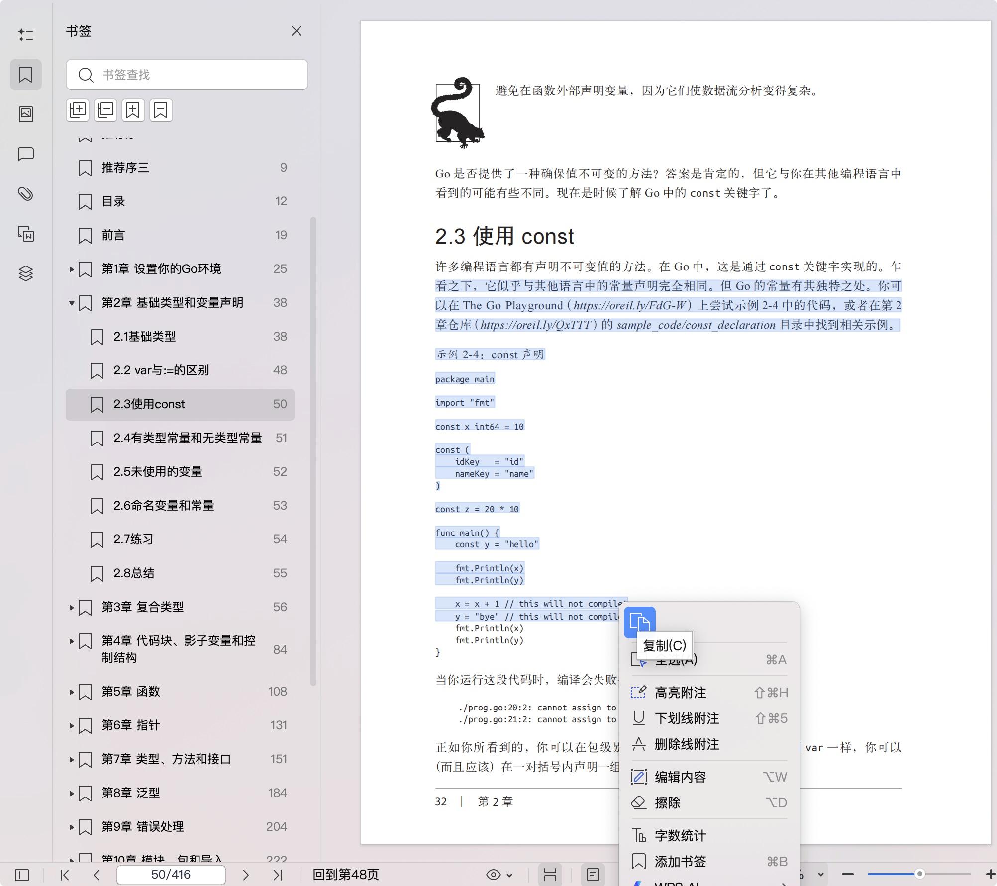 本书是一本系统讲解Go语言开发的实用教程,从环境搭建到高级特性,循序渐进地引导读者掌握Go编程。首先介绍Go的基础类型、复合类型及流程控制结构,帮助读者建立语言基础;接着深入函数、指针、接口等核心概念,结合实例解析泛型、错误处理等进阶内容;还详细阐述模块与包的管理,以及Go工具集的使用,涵盖开发全流程。书中示例丰富,注重实践,通过具体代码演示语法要点与编程范式,同时强调Go的设计哲学与最佳实践,如接口隐式实现、错误显式处理等。本书适合希望系统学习Go语言的开发者阅读,尤其是有其他编程语言基础、想掌握Go高效开发的人员,能帮助读者从入门到精通,构建健壮的Go应用。