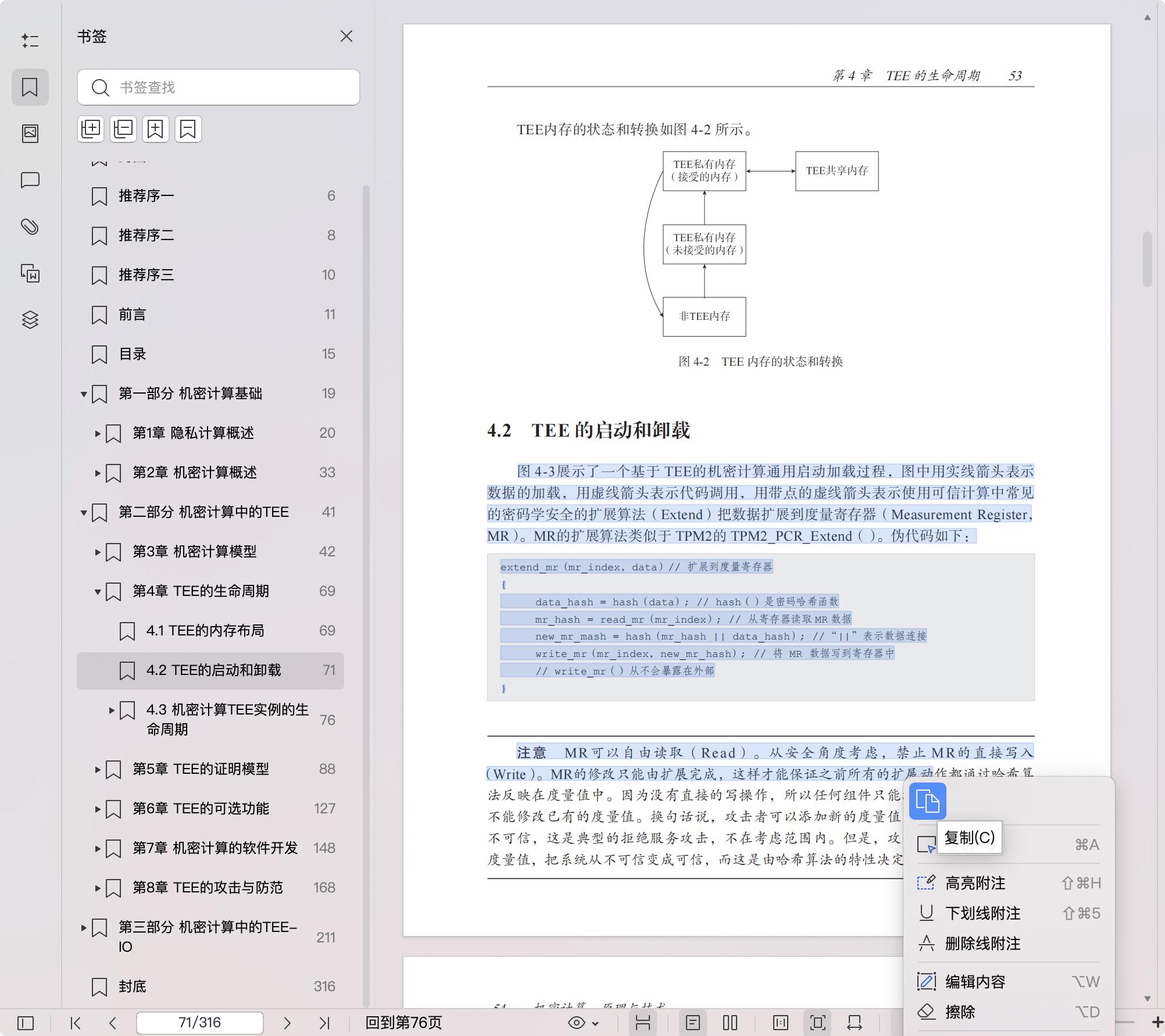 本书系统介绍了机密计算的概念,总结了各类主流TEE硬件通用设计,帮助读者理解TEE硬件的工作原理。本书围绕安全模型、生命周期、证明模型、攻击方法和防范策略,系统介绍了TEE的设计原则和使用方法,并以业界常用的x86、ARM以及RISC-V架构提供的TEE为例,分析了硬件TEE的实现方法,帮助读者理解不同实现的利弊。全书分为三个部分,首先介绍机密计算的基础知识,包括隐私计算的概述和机密计算的定义、分类等;第二部分介绍机密计算中的TEE,主要内容包括机密计算模型、TEE的生命周期、TEE的证明模型、TEE的可选功能、机密计算的软件开发、TEE的攻击与防范;第三部分介绍机密计算中的TEE-IO,主要内容包括TEE-IO模型、TEE-IO的生命周期、TEE-IO的证明模型、TEE-IO机密计算的软件开发、TEE-IO的攻击和防范。本书体系清晰,内容先进,适合从事机密计算相关研究和技术开发工作的人员阅读,也适合作为高校学生的拓展读物。